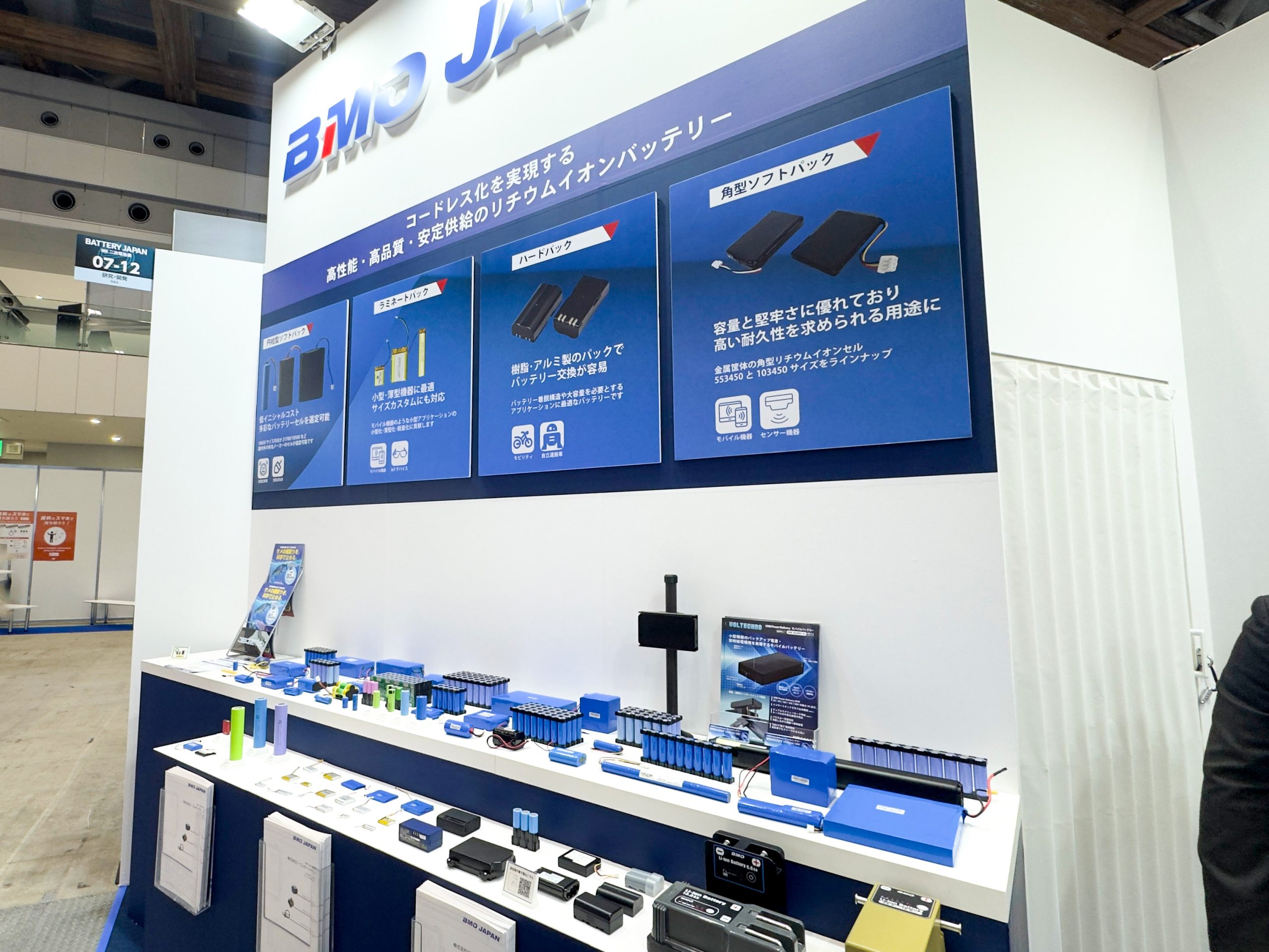 ビーエムオージャパンは今年も幕張メッセにて開催の「二次電池展(バッテリージャパン)」に出展いたします。円筒型・ラミネート型を問わず、ソフトパック・ハードパックなど、さまざまなリチウムイオンバッテリーパックのOEM・ODMを行います。